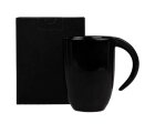 Fabricada em cerâmica de alta qualidade, esta caneca garante a retenção superior de calor, mantendo sua bebida na temperatura ideal por mais tempo. A cor preta clássica e sofisticada oferece um visual neutro e moderno, que realça a beleza do seu cantinho do café e harmoniza com qualquer decoração.