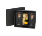 Jogo com 2 taças de vidro para Champagne, com espaço para a garrafa baby (NÃO ACOMPANHA GARRAFA).