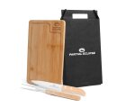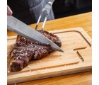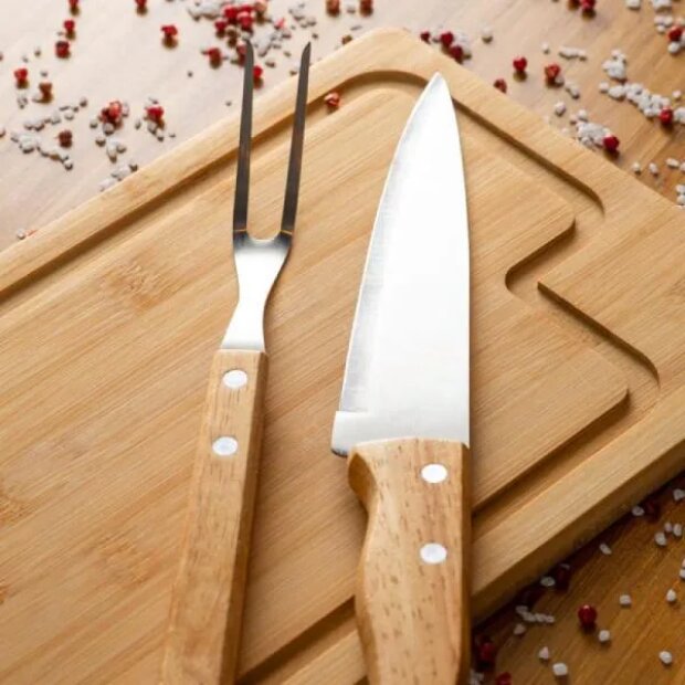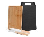 Kit para churrasco; Conta com tábua em Bambu; Faca 7″ e garfo em aço Inox/Madeira.