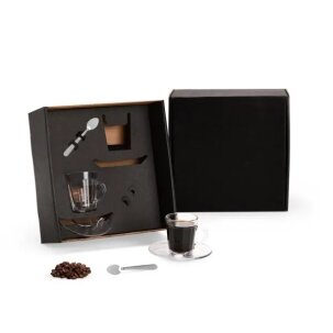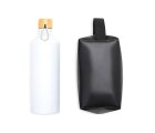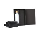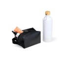 Kit garrafa e necessaire. Composto por garrafa em alumínio na cor branca com capacidade de 1 litro e necessaire com alça em material sintético na cor preta.