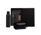 Composto por garrafa preta, confeccionada com dupla parede em Inox e necessaire com alça em material sintético na cor preta.