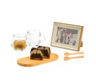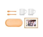 Composto por bandeja para servir e duas colheres de 13 cm em Bambu; duas canecas em vidro e porta retrato em Madeira.