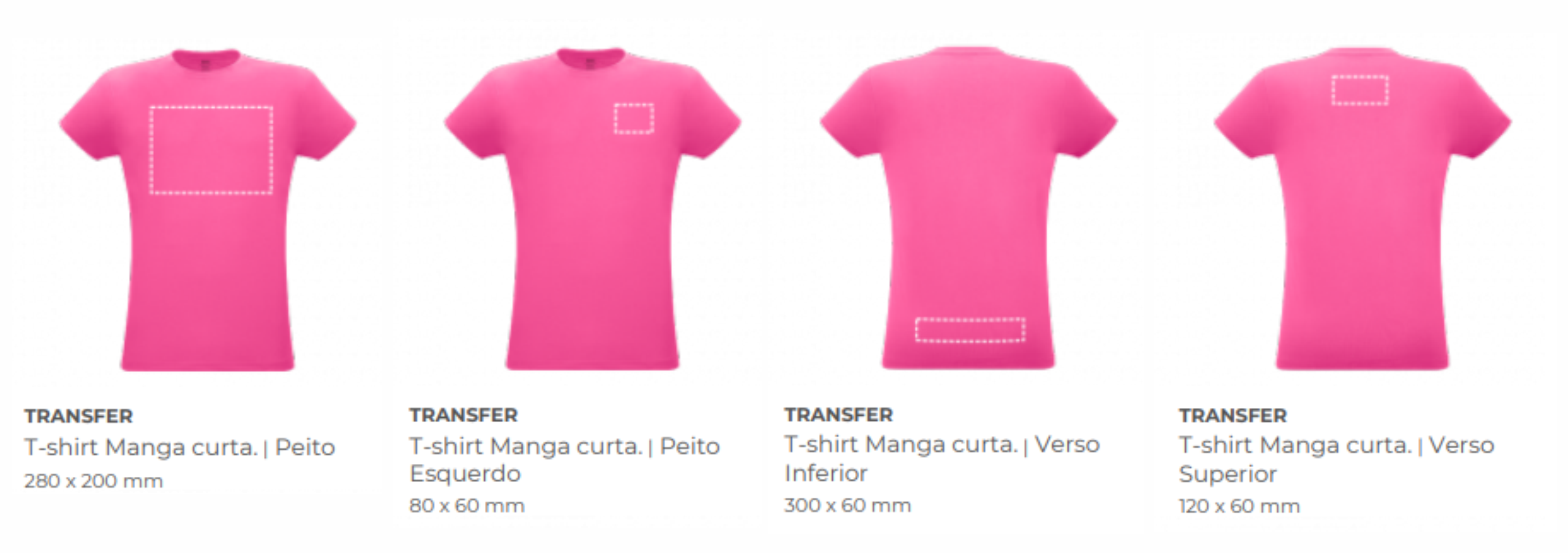 Este modelo permite 1 área de impressão inclusa no valor, e o cliente pode escolher qualquer uma das posições disponíveis no momento da compra: